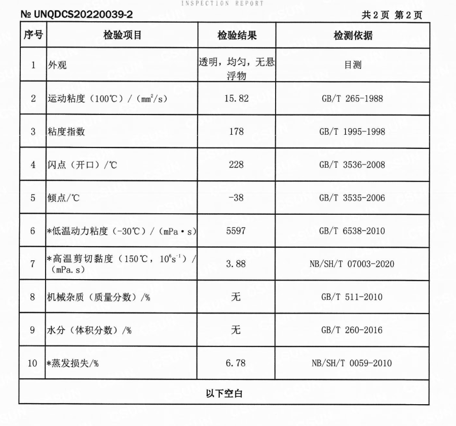 SAE J300标准要求5W-40在-30℃的低温动力粘度不大于6600mpa.s,而霍氏合成汽机油SN 5W-40检测结果为5597,低于标准值很多。表示霍氏润滑油的低温动力粘度越低,冷启动时阻力越小,启动越顺畅。